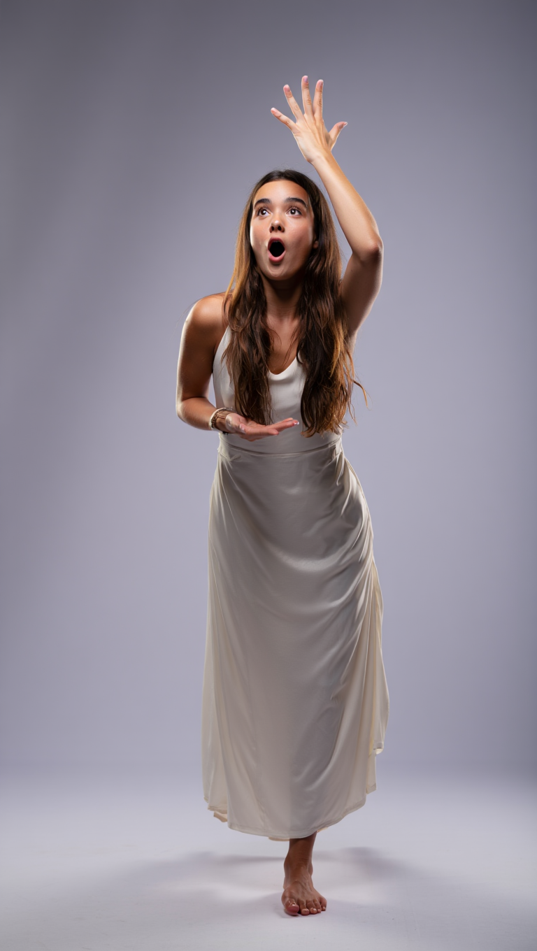 Dynamic Dance Pose of a Woman in White Dress Captu...