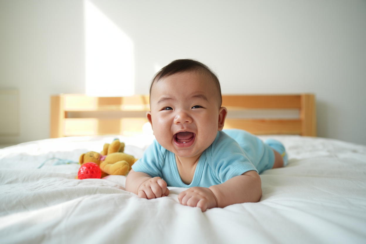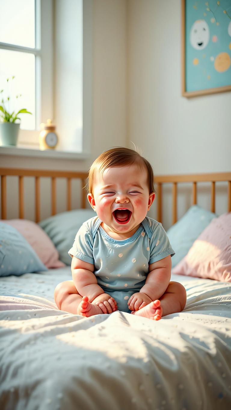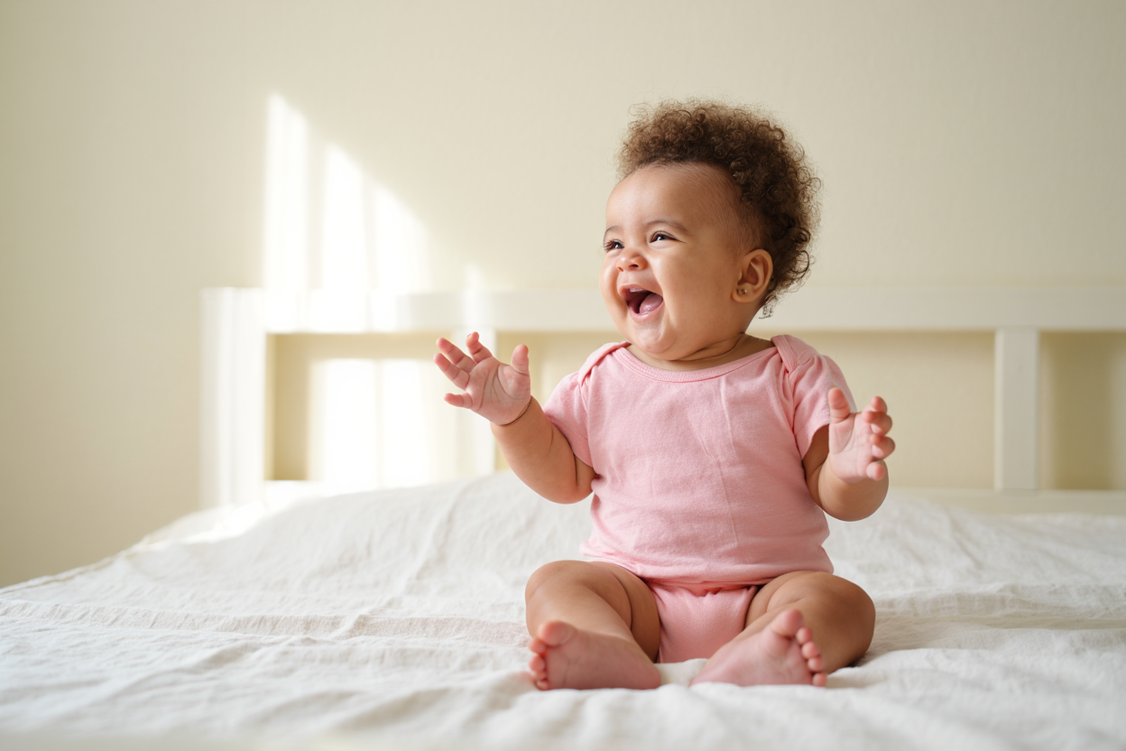 Joyful Baby Smiling in Cozy Nursery, Radiating Hap...